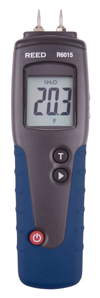 This wood moisture detector uses the electrical resistance principle to measure wood moisture of approximately 170 different species of wood. The R6015 features an automatic temperature compensation (ATC) probe for increased accuracy and includes a remote hand-press for flexibility in the field.